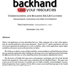 Paper: Understanding and Building High Availability/Load Balanced Clusters 원제 : Paper: Understanding and Building High Availability/Load Balanced Clusters 번역 : Paper: Understanding and Building High Availability/Load Balanced Clusters Theo Schlossnagle이 작성한 mod backhand 와 Wackamole 을 이용한 고가용성 로드 밸런스 시스템을 배치하는 방법에 대한 최상의 설명입니다. 이 아이디어는 여러분이 고가의 불필요한 하드웨어 로드 밸러서를 살 필요가 없고, 여러분이 같은 효과를 내기 위해서 호스트를 이용할 수 있다는 것입니다. peer 기반의 HA 솔루션과 프론트 엔트 HA 장비의 사용에 대한 토론은 읽기에 충분한 가치가 있습니다... 더보기 이전 1 ··· 92 93 94 95 96 97 98 ··· 130 다음